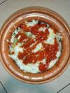 majd megszórtam piros paprikával, paradicsom levet öntöttem rá és babérlevelet tettem a tetejére